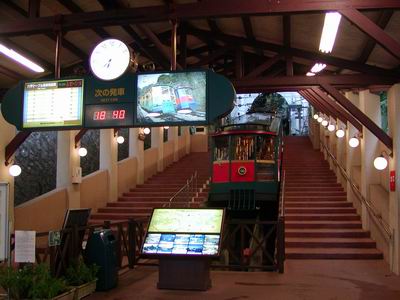 近くの駅からバスに乗って、ここ六甲ケーブルの前に降りた。ケーブルカーの乗客は少なく、中学生っぽいやつらが何人か乗っていた。 | |