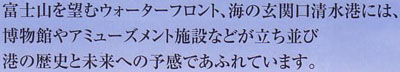 영화관, 박물관, 레스토랑, 쇼핑몰, 슈퍼마켓등이 집결. 10채의 초밥집이 처마를 나란히 하는 '시미즈 스시 요코쵸'도 있어 어린이로부터 노인까지가 즐길 수 있는 복합상업시설입니다.